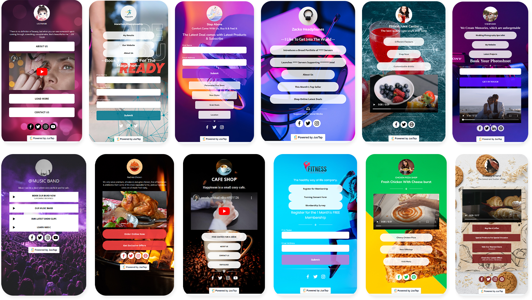 JusTap is loaded with a huge collection of pre-made templates that can be customized in minutes.