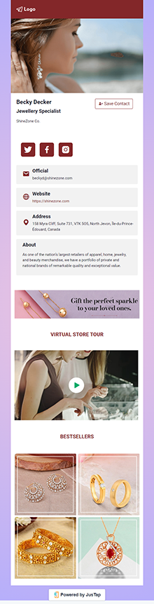 Shares Contactless Digital Business Card instantly anywhere anytime without needing to print 1000s of cards.